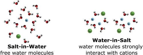 研究人員表示:“水溶鹽電解液指的是極少量的水加高濃度的鹽組成的溶液,水的量剛好能夠溶解離子,促成溶劑的形成。與傳統(tǒng)解決方案不同,該系統(tǒng)不含游離水。”此外,只有由一個大的陰離子與一個小的陽離子組成的鹽分子才可被溶解。例如,雙三氟甲烷磺酰亞胺鋰(CF3SO2NLiSO2CF3)、氯化鈉或食鹽都沒有用,因為它們的陽離子和陰離子大小相似。