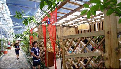 4、太陽能餐廳2014年7月份,一家太陽能餐廳在江西新余市正式營業(yè)。據(jù)介紹,該餐廳占地4800平方米,聚餐飲、光伏屋頂發(fā)電、智能化生態(tài)花園于一體,可同時容納600人用餐。餐廳屋頂全部安裝了多晶硅光伏發(fā)電板,按照當(dāng)?shù)仄骄照諘r間估算,項(xiàng)目一年可發(fā)電約55萬度