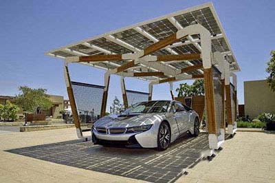 6、太陽能車棚電動汽車沒電了?來個太陽能車棚試試。現(xiàn)在讓我們來看看一款高端大氣上檔次的太陽能車棚吧。寶馬大概覺得自家的i系列車型太過華麗,需要配備專屬的車庫才行,于是他們?yōu)閕系列車型設(shè)計了專門的太陽能車庫。為秉承電動汽車的環(huán)保理念,這款太陽能車庫采用竹制及碳纖維骨架,車庫頂部則是半透明的太陽能電池板。主要陽光充足,車庫吸收的太陽能就足夠i系列車型充電,多余的部分甚至可以貼補(bǔ)家用。另一個方面,這款車庫的壽命長達(dá)30年左右,所以說一次投資受益還是頗久的。這么酷炫的車庫,看著還是挺爽的,可咱老百姓沒那么大能力去消費(fèi)呀。